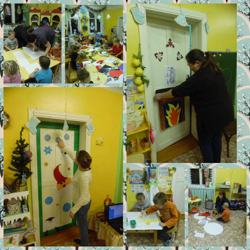 Перед Новым Годом воспитатели и родели решили подарить своим детям новогоднее настроение и украсить группу. 20 декабря в старшей группе прошел мастер-класс "Новогодняя гостинная". В результате которой украсили двери в группе.