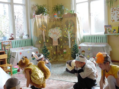 В октябре во всех группах нашего детского сада прошли осенние развлечения! Так у самых маленьких ребят в гости приходил Петрушка, они водили хороводы с овощами, танцевали с листочками. В средней группе ребята были в костюмах грибов, пчел и зверей. А в старшей группе дети нарядились в костюмы животных, а в гости к ним пришли Зима и Осень. Хочется сказать: " Осень- прекрасная пора!"